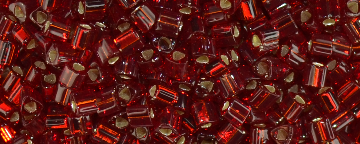 TOHO 11/o Triangle-Garnet Silver Lined Stock # :11Tri25D * Packaged in a 14 Gram Rectangular Flip Top Container.